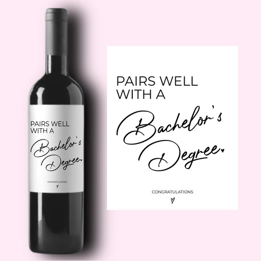 Pairs Well With a Bachelors Degree Graduation Wine Label