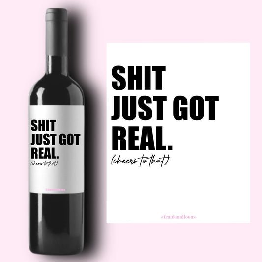 Shit Just Got Real Cheers Graduation Wine Labels
