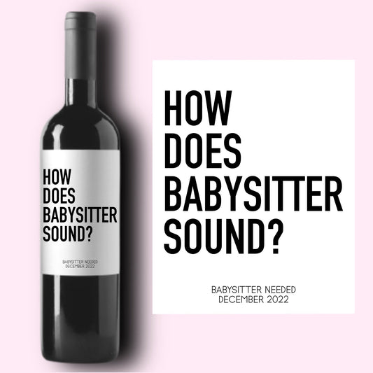Babysitter Needed Baby Announcement Wine Label
