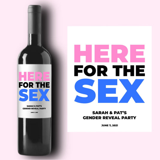 Here For The Sex Gender Reveal Party Wine Label