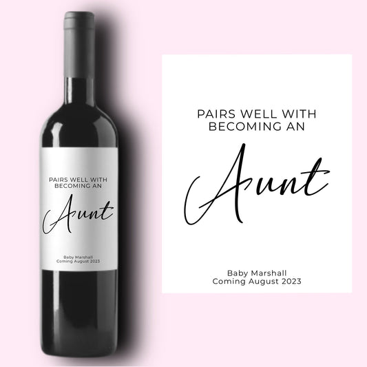 Pairs well with becoming an Aunt Pregnancy Announcement Wine Label