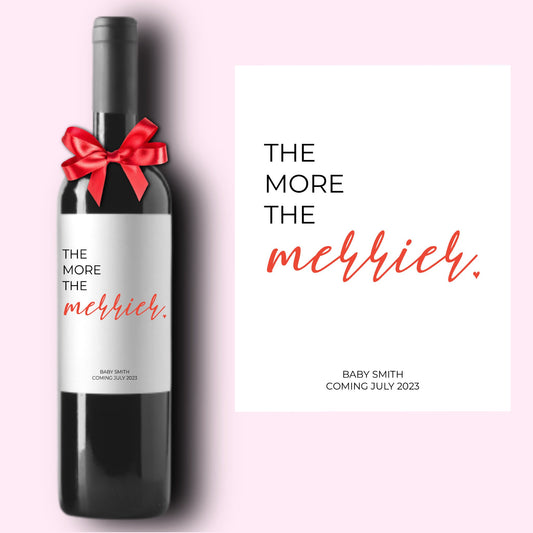 The More The Merrier Christmas Baby Announcement Wine Label