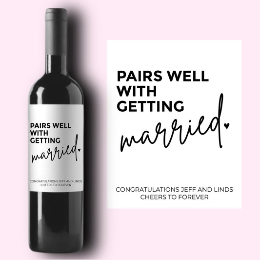 Pairs Well With Getting Married Wedding Wine Label