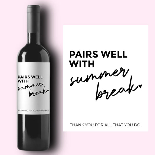 Pairs Well With Summer Break Teacher Gift Wine Label