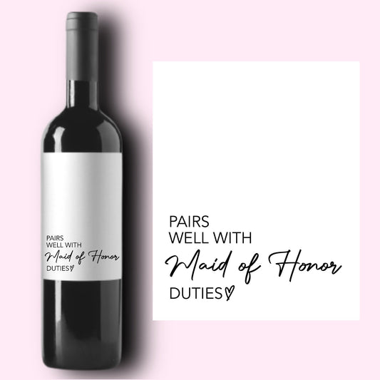 Pairs Well with Maid of Honor Duties Wine Label