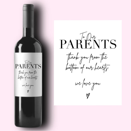 Thank You Parents Weddding Day Wine Labels
