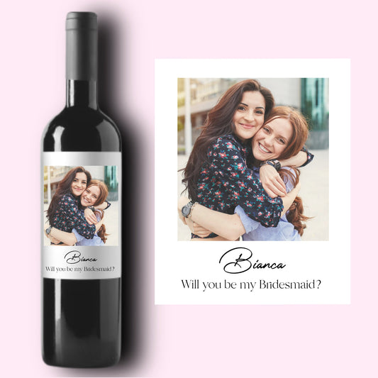 Pairs Well with Birdesmaid Duties Custom Photo Wine Label
